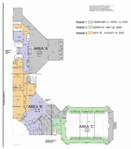 During the first phase of renovations, several areas of the facility will be temporarily closed or relocated.